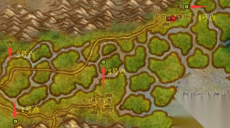 1、提前接“沼泽中的梦境粉尘”“调查神庙”“马森的请求”“还有螃蟹”(尘泥沼泽打乌龟的后续)。沼泽中水边有<破烂的木箱>,可接任务“遗失的补给品”(去守望堡),本地图无飞行点。 2、进入沼泽地图后右转跳下山杀小绿龙,做“沼泽中的梦境粉尘”,在(1)号点接“逼近的野兽”,杀各种动物至(2)号点接“德莱尼水晶”,杀至(3)号点,杀名为<木棒诺博鲁>的怪得<诺博鲁的木棒>接任务“木棒诺博鲁”,附近的沼泽怪可做“马森的请求”(也可不急做,后面顺路杀),完成“逼近的野兽”交并接“丢失的货物”。 3、前往右上<农田避难所>,做“德莱尼水晶”“丢失的货物”,(4)号点有护送“加林的逃亡”,完成护送,交“加林的逃亡”,交“德莱尼水晶”“木棒诺博鲁”,交“丢失的货物”接“晒干的流木”。 4、前往东边海滩,路上完成“马森的请求”“调查神庙”,到海边后做“晒干的流木”(或附加“还有螃蟹”)。完成后自杀,在诅咒之地虚弱复活,回悲伤沼泽交“晒干的流木”,接“运送货物”,前往诅咒之地的守望堡,交“马森的请求”“运送货物”,开鸟点,飞暴风交“调查神庙”(后续不接),准备前往荒芜之地。