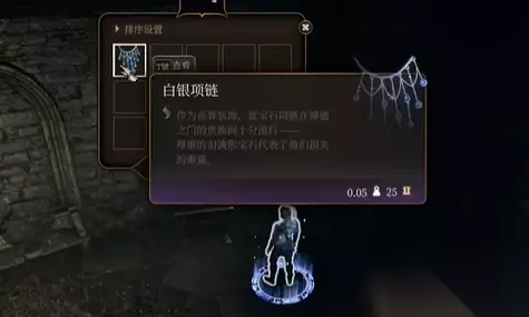 7、开门抵达下一个房间后右转能够看到一个镀金箱子,翻开能够取得白银项圈;