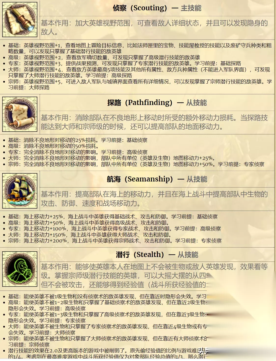 侦察系的技能,则是对应3代理的侦察、寻路、航海、后勤等等移动方面的技能。也对英雄的自身战斗能力没啥帮助。