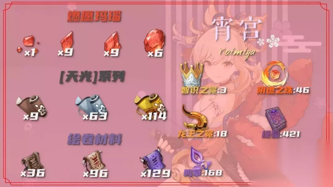 ▲ 宵宫全培养材料一览
