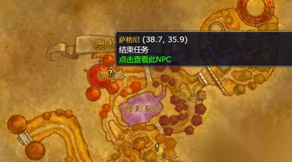 2、接着前往奥格瑞玛的智慧谷,来到坐标(38.7,35.9)的位置,和萨格尼对话提交任务即可。