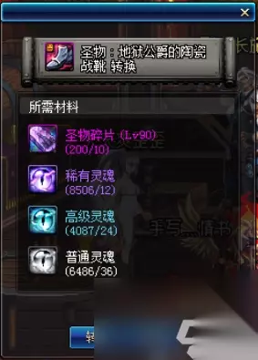 如上图所示,合成圣物装备,必须满足3大方面:假紫装备、圣物设计图、合成材料等。在当前版本的DNF,假紫不需要多少金币,一般1200~2000左右金币,就能从拍卖行买到;圣物设计图则需20个红玉髓换取(90级),圣物碎片1:1兑换,共需10个红玉髓,也就是说升级一件圣物需要30个红玉髓;而灵魂材料需要稀有级12个、高级24个以及普通级36个。 除了买假紫装备的钱,其余可以忽略不计。红玉髓作为自己都差不多药扔掉的材料,现在终于有了“用武之地”还不是高高兴兴的处理掉啊,其本身,通过每天的积累,红玉髓已经有很多了;而这种灵魂,就更不需要说,其自己付出什么代价了,一般都是自己分级装备额外获得的材料,灵魂一般没什么用,放到这里还可以赚钱,何乐不为。 ②分解1件圣物装备能赚取多少金币? 首选要说的是,分解机的选择。在游戏中,分解机一般分为两种,一种是自己的分解机,另一种则是副本门口自带的分解机,我们简称NPC分解机。 在自身副职业分级机为满级时(11级),我们选择,NPC分解机;而在自身分解机满级的情况下可选择,自己的分解机。下面看看具体情况: