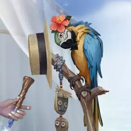 好奇的鹦鹉侧头望着前来度假的旅客,鲜艳的羽毛与它头顶的花朵一样明媚,它已准备好与你一同度过这段惬意的时光。