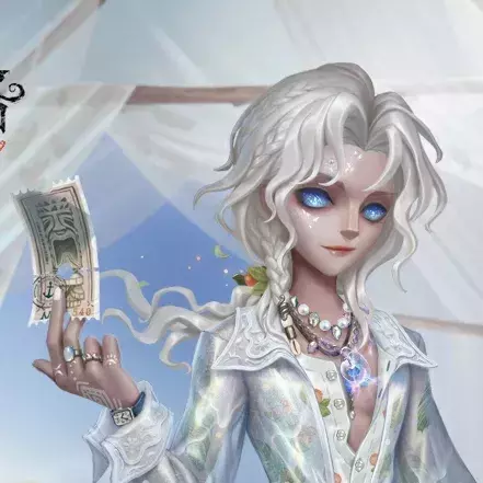 白色长发随性地束起,细碎的云母片与珍珠点缀在他的侧脸,胸口的贝壳项链散发着海蓝色的光辉,与他的眼眸相互映衬,他已准备好开启夏日之旅的船票。