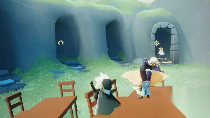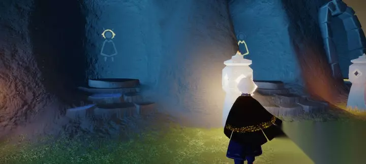 黑金斗篷复刻先祖位于墓土四龙图的螃蟹烧烤架附近。玩家需从墓土入口直飞至四龙图区域,随后向右侧山体后方飞行,在篝火旁即可找到该先祖。该先祖属于光圈引导类型,需在限定范围内收集先祖记忆碎片完成解锁流程。