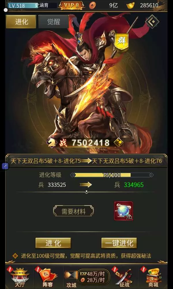 又升了把波吕布,加了200多万战力!