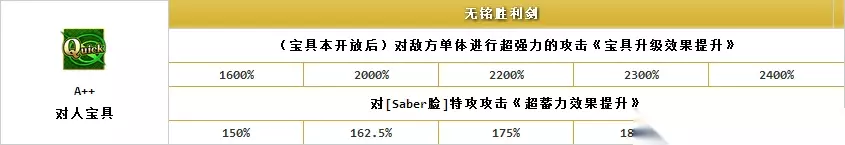 礼装『SSR★5纯洁绽放』可以提升装备从者的宝具威力。满破增加上限但不改变每回合的提升。满破后相比较未满破的礼装『天之杯』,需要足足8回合的时间才能持平,10回合后才能达到最大50%的宝具威力提升,相比较未满破礼装『黑圣杯』的60%宝具威力提升也有所不及。在快节奏的国服环境中远不如其他同类型礼装。 再来看『SSR★5阿尔托莉雅之星』