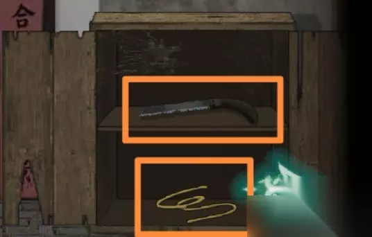 26.右转,地上拾取【砖头】,墙边拾取【铁钳】。发现地上一个燃烧着的火盆、地上木桩4位滑钮锁、墙边柜子锁上了。用铁钳在火盆里翻找,发现一张纸条,从左往右观察纸条上4条笔画的颜色顺序(红黄红黄)。摇晃柜子上纸钱,得【火柴】