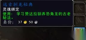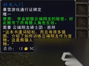 (5)翔龙训练书:驯龙入门,在潘达利亚翡翠林的百木园由NPC飒安红鳞出售,要求云端翔龙骑士团崇拜才可以使用。