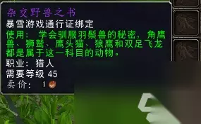 (2)羽鬃兽训练书:杂交野兽之书,在7.0猎人职业大厅NPC善良的潘处购买,需要完成猎人职业坐骑任务线,获得狼鹰坐骑。