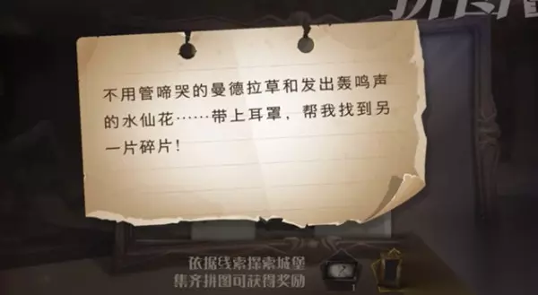 哈利波特手游10月23日拼图寻宝活动给出的新线索提示中有一条的内容是:不用管啼哭的曼德拉草和发出轰鸣声的水仙花....带上耳罩,帮我找到另一片碎片! 这个线索中提到了啼哭的曼德拉草以及发出轰鸣声的水仙花都是带有魔幻色彩的植物,而总容易发现他们的地方自然就是草药课教室了。