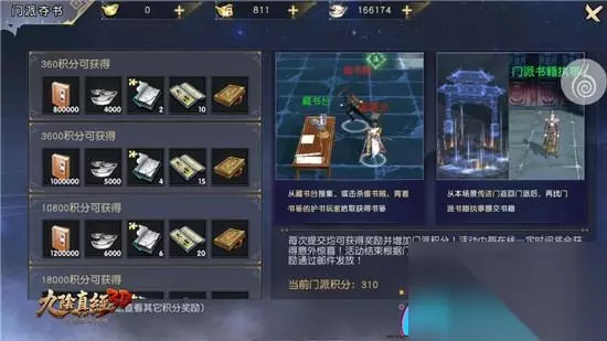 积分累计,赢取丰厚奖励 每一次成功提交夺书任务,玩家都将获得奖励并增加门派积分。在活动期间,每经过一定时间,还能额外获得奖励。活动结束时,玩家通过积累的门派积分,可以获得大量经验、银两、残卷及悟性点等宝物,从而大幅提升个人实力。