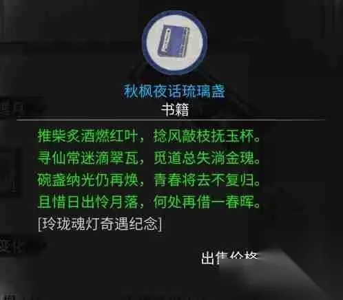 奇遇选择与奖励: 一、选择一: 剧情后获得“秋枫夜话琉璃盏”,奇遇结束。
