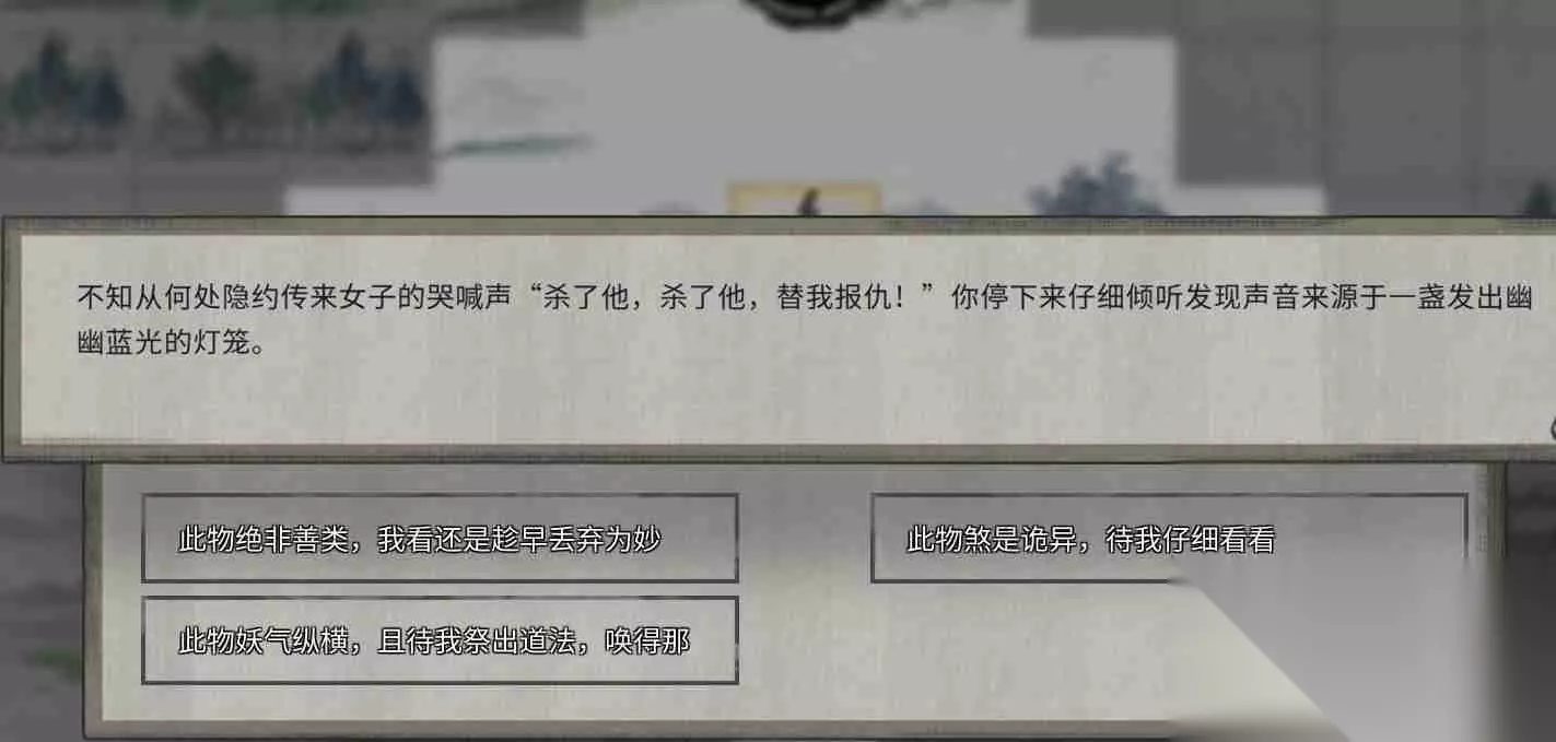 二、选择二: 遭遇魔道老祖并战胜后,获得藏宝图。前往藏宝地点,灯灭后出现分支: