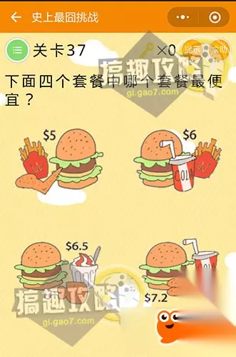 将后面拿到数字2摩擦摩擦~ 微信史上最囧挑战第37关攻略: 下面四个套餐中哪个套餐最便宜?