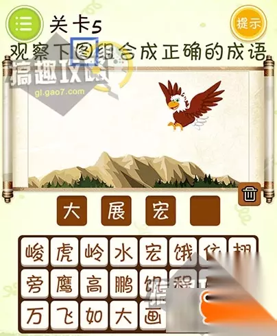 点击题目上的“东西”即可。 微信史上最囧挑战第5关攻略: 观察下图组合成正确的成语。