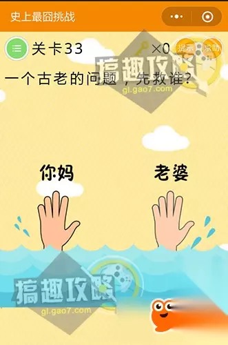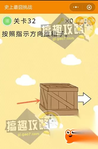 一定要从箱子的左边向右边推哦~ 微信史上最囧挑战第33关攻略: 一个古老的问题,先救谁?