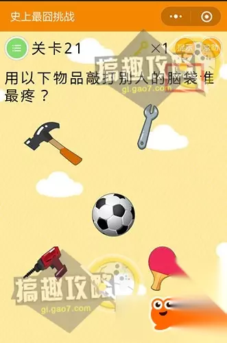 平时你们是怎么挤痘痘的?对~就是两只手向内!快下手吧! 微信史上最囧挑战第21关攻略: 用以下物品敲打别人的脑袋谁最疼?