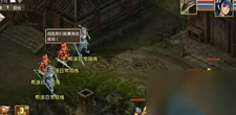 帮会日常任务: 收益:10活跃(这个很重要,每天8点的押镖要100活跃)、道行、武学、经验 钱、潜能。。。。。。 难易程度:单人,容易。不能挂机、不能挂机、不能挂机,重要的事情说三遍。 点活动菜单,找到帮会日常任务,点击,到帮会里,找帮会总管接任务。 一次帮会日常任务分5个小任务,每次小任务都是随机在下面的类型中抽取。 1,杀5个帮派日常陪练