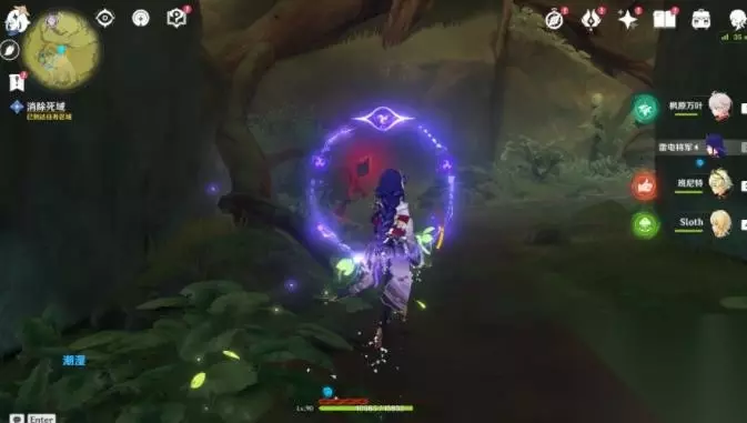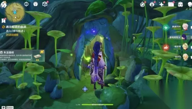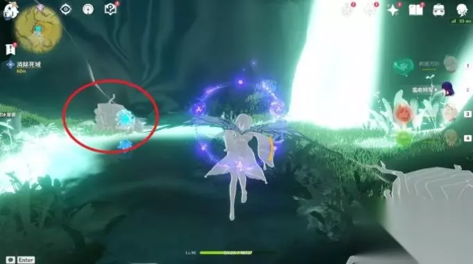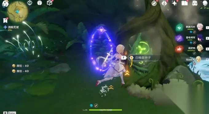 5、进入「林中黯道」,清除死域。 每处死域枝节后都有通道传送点,可以进去拿草种子。 第一处: 进入通道后可以使用草元素攻击石头,石头会升起来,草种子就在里面。