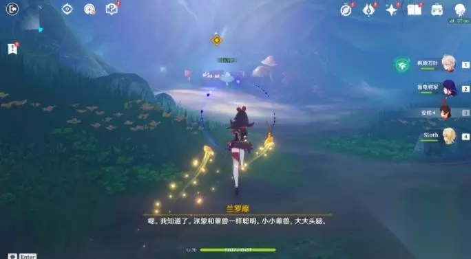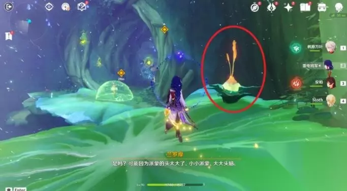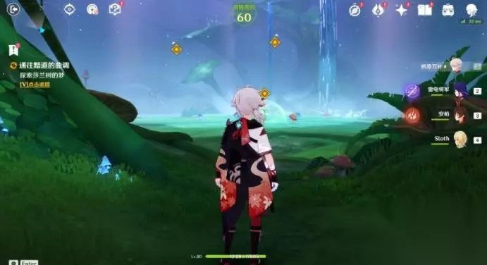6、调查觉树之堂中的树木。 7、与兰罗摩对话,进入莎兰树的梦。 注意:此秘境一定要带个弓箭角色!!!此秘境为一次性的,宝箱记得捡完!! 进入秘境后需要收集三枚「原始松脂」,以继续前进… ①第一枚「原始松脂」 进入秘境第一眼即可看到,击败周围的敌人后可拾取。