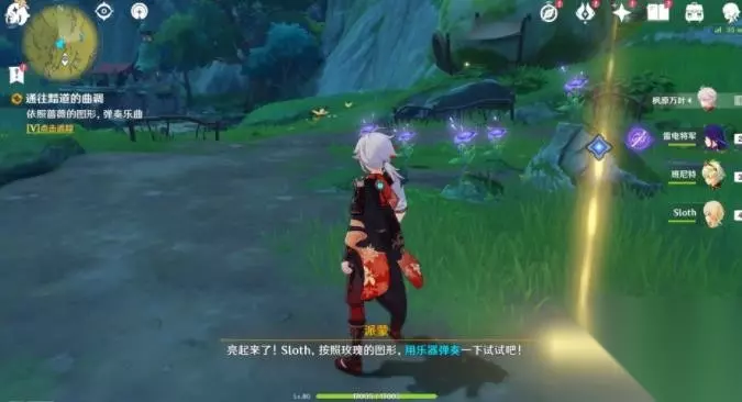 4、跟随任务提示前往指定位置,利用「黯道的曲调],开启通路。 通路开启后直接穿过即可。