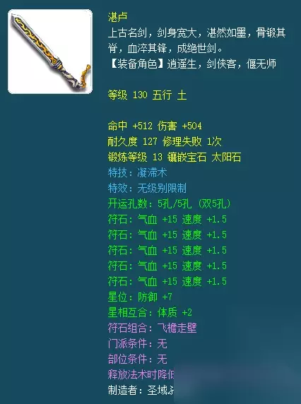 也就是说,湛卢、鱼肠、干将源自同宗。 湛卢与鱼肠不同,鱼肠是剑身曲折短小,近似于匕首,而湛卢剑身宽大、厚重。关于湛卢剑,最著名的一个传说莫过于“仁道之剑”,最初湛卢剑为越王所铸,越王勾践战败,将此剑献于吴王夫差。然而吴王无道,坑杀万人,以葬其女,湛卢剑竟自行离开,飞至当世名君楚王身边。从此,湛卢剑便化为正义与仁德的代表——所谓仁者无敌。 在游戏中,湛卢剑与鱼肠、倚天同为90-150非强化打造造型。在大量美术资源迭代前,湛卢是少有的、不发光的光武……地位非常尴尬,很多玩家同等情况下绝对选择其他造型。 但是!迭代之后的湛卢,也开始闪闪发光了。