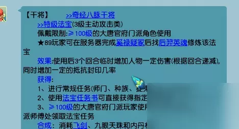 干将是一个主动法宝,平常简单任务中并不会浪费一回合去使用。但是在PK中,一方的大唐一旦起了干将,将会被视作威胁度急剧提升的单位。 早就有网友对15层干将做了测试: