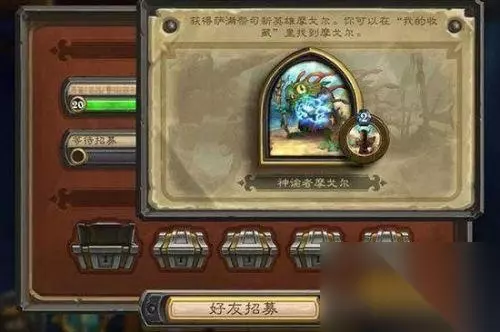 炉石传说5.2.0版本更新上线了萨满头像——鱼人摩戈尔。那么这个萨满鱼人头像怎么才能获得?根据官方的规则是通过炉石好友招募并且达到一定等级才能获得,接下来就为大家带来炉石好友招募流程规则介绍。 前提: 1、你必须至少登录《炉石传说》一次才可使用好友招募功能。 2、好友的全职业总等级必须低于20级才拥有参与资格。 3、一旦招募者使用招募功能,便只能在相应地区的服务器领取奖励。例如,如果一个国服的玩家向亚服玩家发送了好友招募,是无法获取奖励的,除非他招募的好友也在国服。 步骤一:在游戏中打开左下角的好友列表,点击“握手”图标