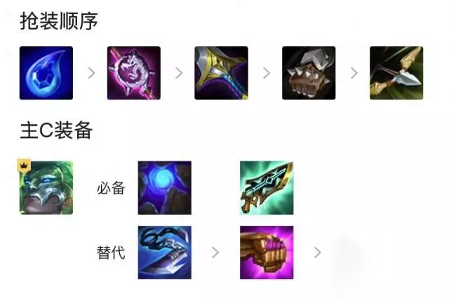 装备推荐: 主C火男:必备蓝BUFF+科技枪,备选巨杀、法爆(火男装备上蓝BUFF后,无限技能,停不下来) 婕拉、辛德拉:圣杯等辅助装备 蕾欧娜主坦:泰坦+龙牙+其他肉装 抢装顺序:眼泪、大棒、大剑优先,优先合成火男必选装备