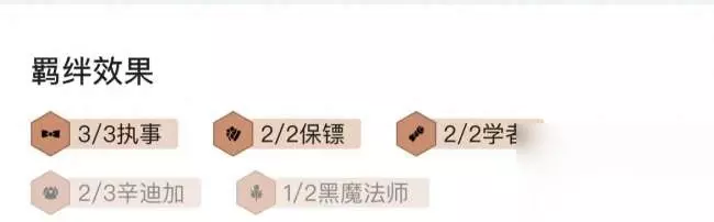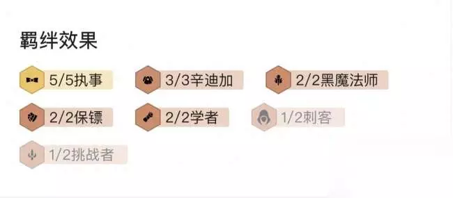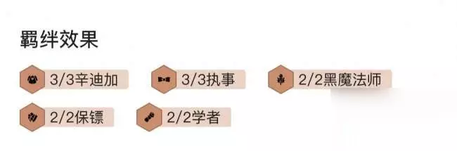 阵容羁绊:8人口大成,组成5执事、3辛迪加、2黑魔法、2保镖、2学者