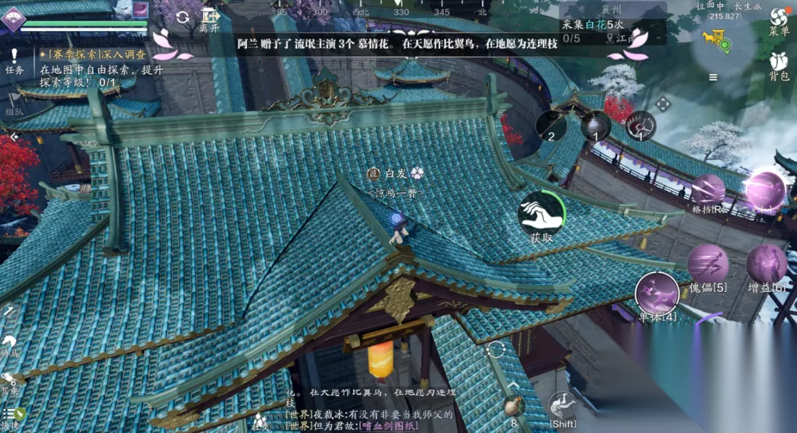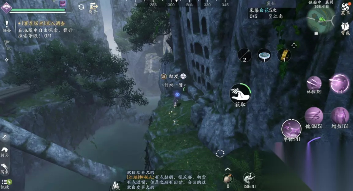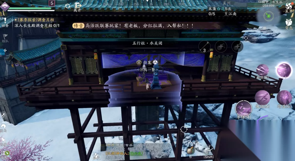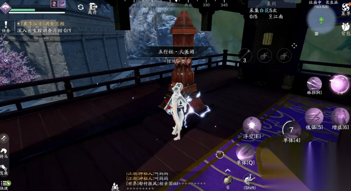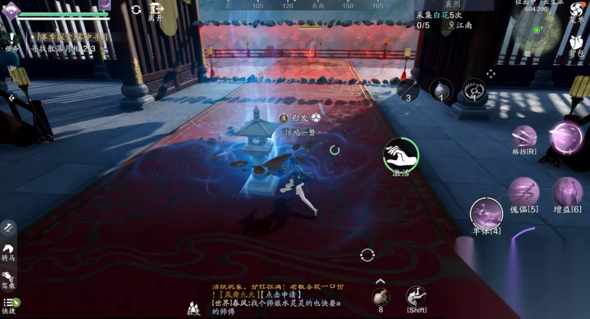 三、江湖试炼 襄州探索需要完成5次江湖试炼的挑战,主线任务的笑道人也算一次,那么剩下的4个江湖试炼我们需要自己去寻找,并且都有非常复杂的前置任务。 (1)江湖试炼1:雪子(214.762) 这个江湖试炼一共有两个BOSS,我们分别前往天峰盟分舵以及青龙会分舵,两个地方都会给出提示放置某种物品,可招来白毛凶兽或者银甲招魂。