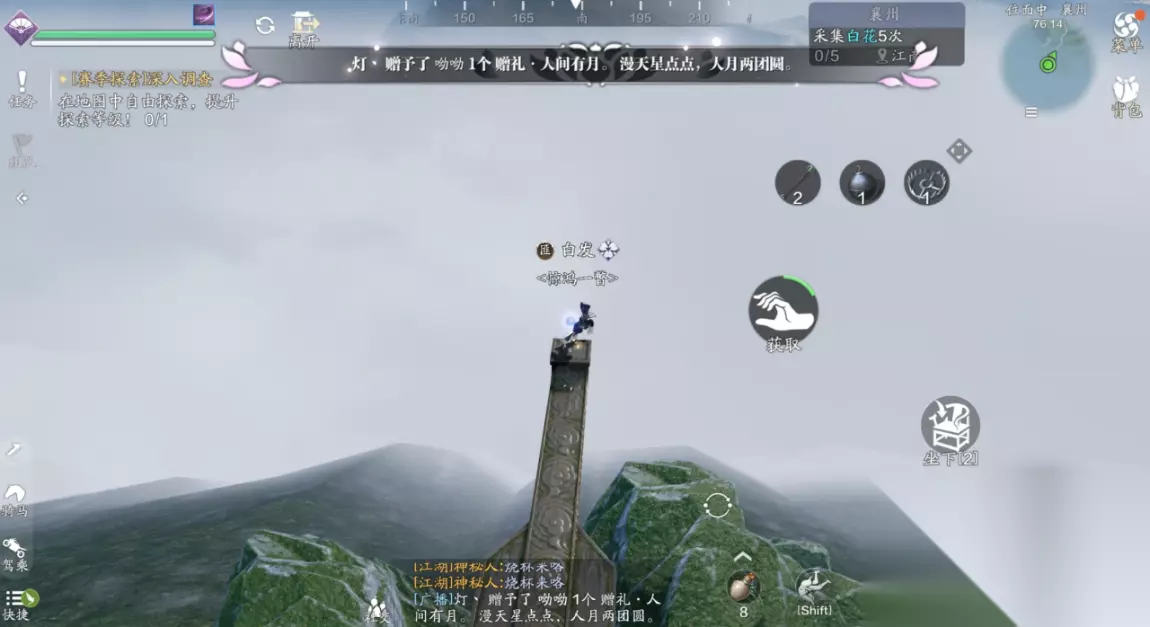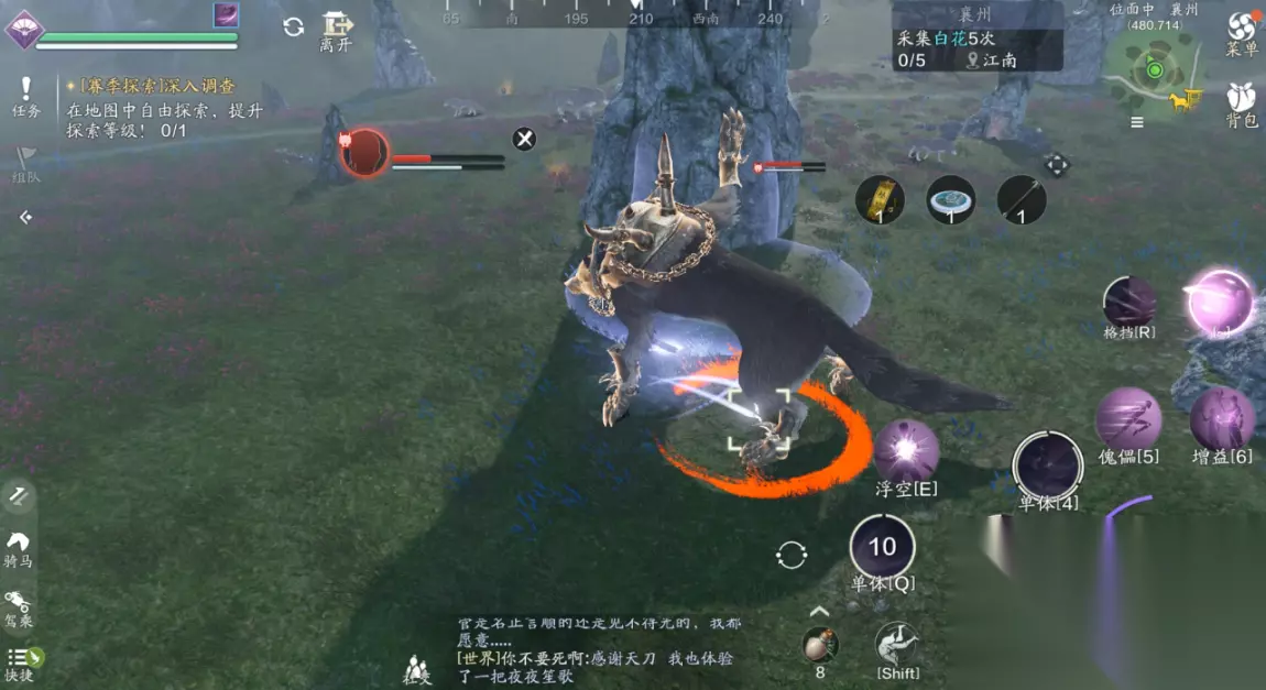 前置条件:银莲(724.509) 前置条件我们需要找到银莲,银莲会刷新在月息泽传送点的后方,就在河边的位置,少侠可以直接过去拾取。 小编采集完之后,回到了天峰盟分舵,也就是提示可以召唤白毛凶兽的地方,召唤出了雪子首领,击败了雪子之后我们即可完成一次江湖试炼。 (2)江湖试炼2:玄甲校尉(733.534) 我们完成了雪子的挑战之后,再次进入次位面并且传送至月息泽,然后沿着传送点后方的水里走一段路,就会激活第二个首领玄甲校尉,完成挑战之后,我们即可再完成一次江湖试炼。 (3)江湖试炼3:狼王前置1:司空央(657.888) 我们先到真武旁边与司空央进行对话激活前置,它会要求我们击杀狼王精英怪获取5个狼王的剪影,任务怪会刷新在石林传送点的附近,刷新数量挺多的。