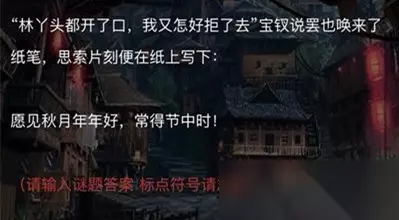 关键字:犯罪大师诗社戏语谜题答案是什么 谜题答案分享 犯罪大师是一款解谜游戏,游戏中有很多的案件,其中诗社戏语谜题中的第三题,很多玩家想知道诗社戏语谜题答案是什么?其实我们只要将题中汉字重新排列即可得到谜底。下面就是这道题的答案解析了,一起来看看吧! 愿见秋月年年好,常得节中时谜底是什么