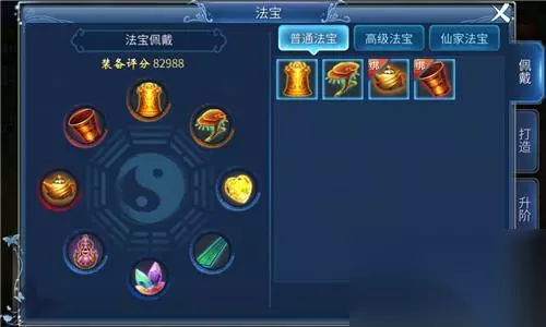 佩戴合适的法宝,是玩家提升自身实力的不二选择。法宝可为玩家带来可观的属性加成,同一个角色,使用不同法宝组合也会有不同的强化方向。 一、法宝界面