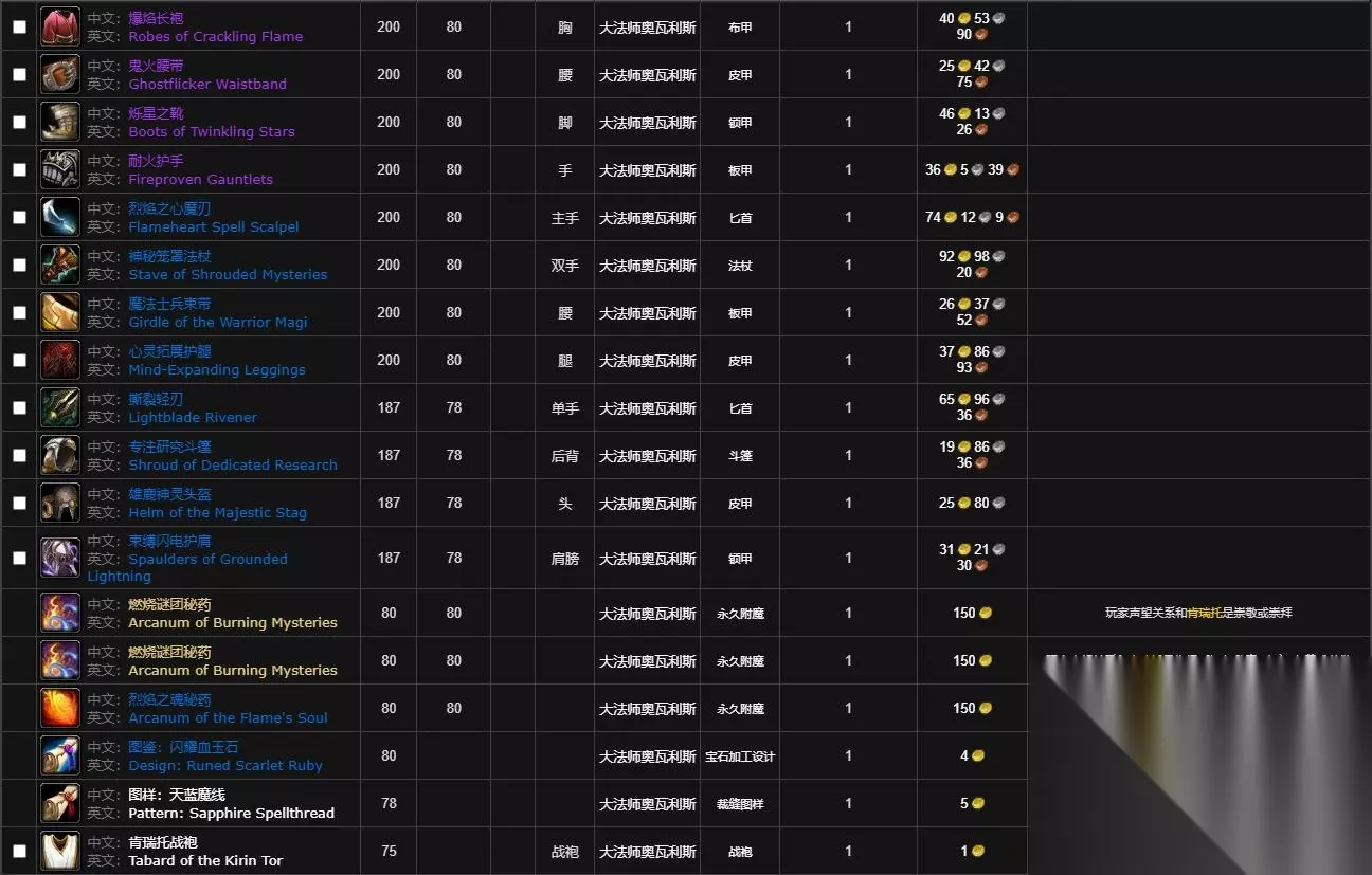 3、以下是达拉然肯瑞托军需官可兑换物品。
