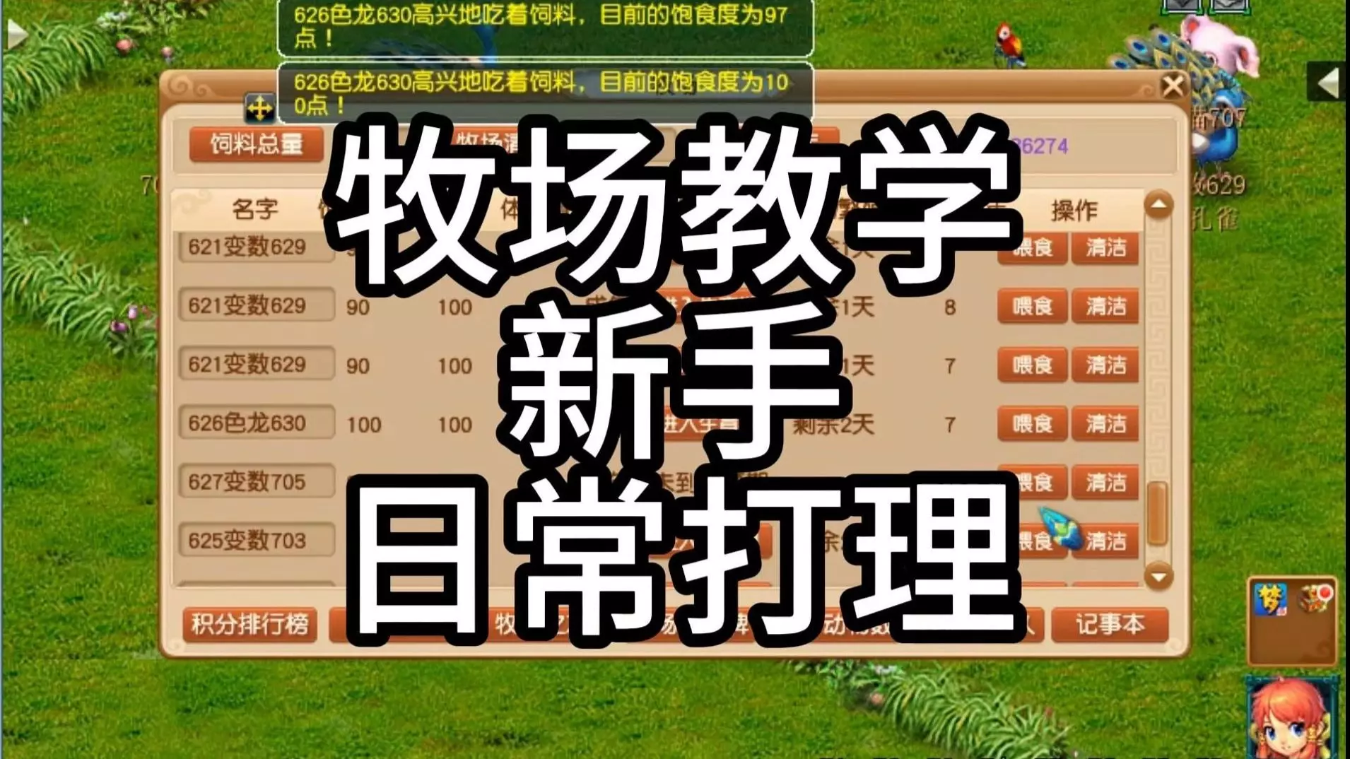 梦幻西游中,除了打图、押镖、跑环以及做师门等这些热门的日常单人任务之外,还有不少比较另类的单人玩法。例如庭院种植以及牧场养殖等。牧场玩法已经开设很多年了,算是梦幻西游里面的一个老玩法,但目前依然是玩家们喜欢的单人玩法,尤其是养号,牧场可谓是玩家养号的最佳玩法。这一期就来与大家分享一下目前最实用的牧场玩法攻略,操作简单,言简意赅,覆盖面广。 关于牧场怎么玩,网上有很多攻略套路,但很多人还是对牧场玩法很迷糊。下面让职业玩家给大家聊一聊最简单的牧场玩法。 首先玩牧场的需要注意一点,牧场只跟着账号走,而不是跟房子走,所以房子多垃圾都无所谓。 先收饲料,根据各区物价,积分什么价就以什么价收饲料。反正收不到就在世界公屏喊一喊,问一问,收几十个就行,先用着。 接下来就是收窝。初级牧场可以养3个鸟,一个爬虫,3个哺乳,2个珍兽。不要说养什么收益最好,鸟养孔雀或鹦鹉,爬虫可以选蛇或鳄鱼,哺乳可以选树袋熊或垂耳兔。