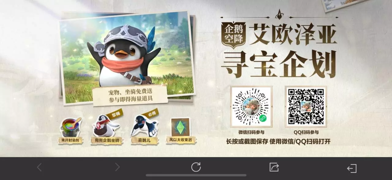 艾欧泽亚寻宝企划:与小企鹅开启一场寻宝大冒险!参与艾欧泽亚寻宝企划,必得宠物【喜鹊儿】,还有机会获得坐骑【兜兜企鹅】哦!