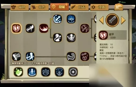 11、一般品质的装备在洞窟内的点金台,点金后就会变成黄金装备; 12、装备可以在洞窟内的附魔台附魔,附魔后会给装备加上附魔属性,附魔属性不叠加,每件装备只能有一个附魔属性; 13、附魔消耗法力值和附魔材料,附魔材料可探索洞窟或击败怪物获得; 14、每次进入洞窟只能从存档点开始探索,每10层有一个存档点,每30层有一个boss; 15、洞窟内会不定期的出现闪星星的墙,点开则可进入神秘的房间,房间内有普通宝箱、水晶宝箱和通往下一层的入口; 16、探索洞窟时发现地上有法阵时,可以踩上去激活它,当激活三个法阵时,神秘房间的入口就会打开,房间内有一只精英怪,击败它后可以得到普通宝箱+水晶宝箱+陶罐+土堆;