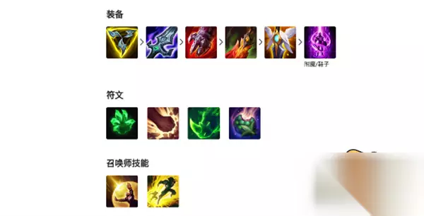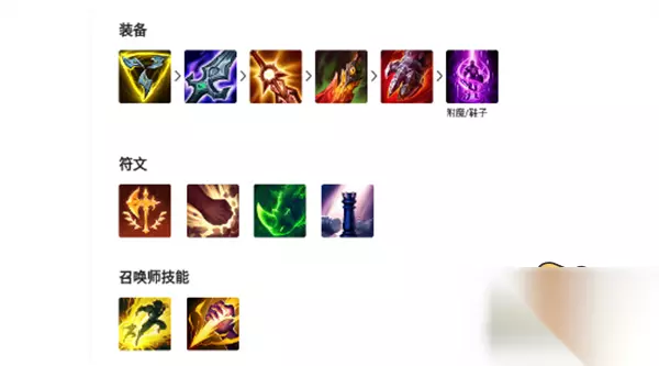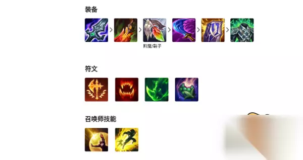 三项、破败、烈阳、死舞、血手、传送。 符文:征服者、残暴、猎人泰坦、战略家。 出装思路:三项、破败、烈阳三件套打出的爆发比智慧默认来的更高,后续可以根据对面阵容进行装备的选择。