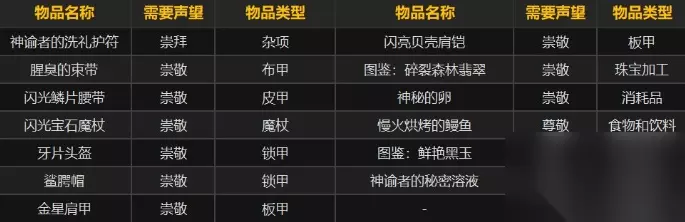 4、详细的声望奖励如下图所示。