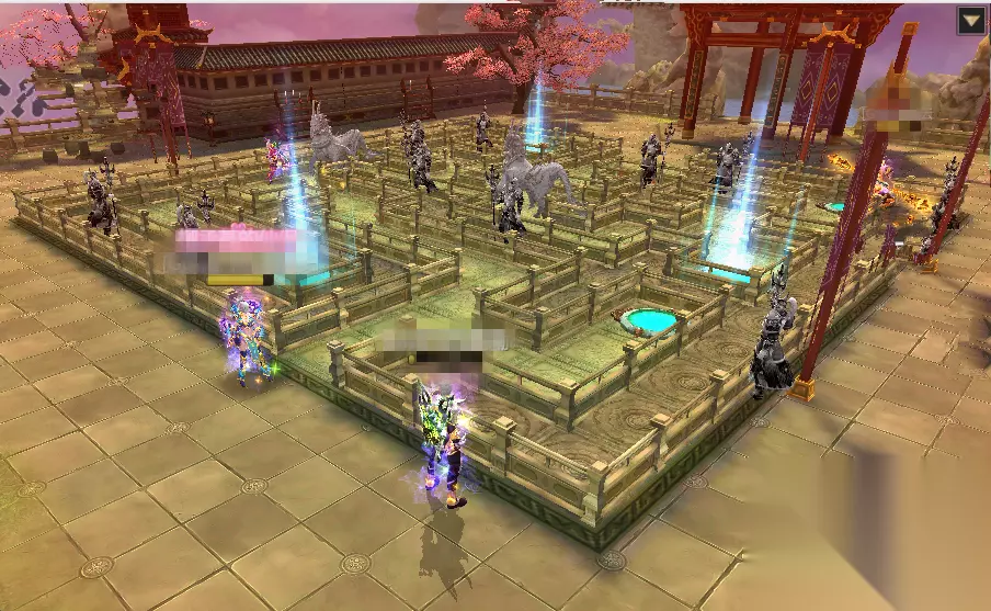 我们最需要注意的是他的蛇灵轮和妖术,当姚开江放出蛇灵轮的时候,输出玩家们一定要第一时间打掉蛇灵轮,否则它召唤出的蛇影将会为我们造成不小的麻烦,而当姚开江施放妖术之后,所有玩家都会变成无法攻击的小蛇,只有使用场上的灵珠才能解除妖术,小狐狸建议让武尊和百花优先服下灵珠解除妖术,这样一来,可以把团队的生存能力提到最高。 机关迷阵——花园迷宫 当玩家们达到后花园之后,就会遇到一处迷宫,迷宫不是很复杂,玩家只需要将其中的法阵悉数踩灭便可以召唤Boss——追魂太岁、火蝙蝠。