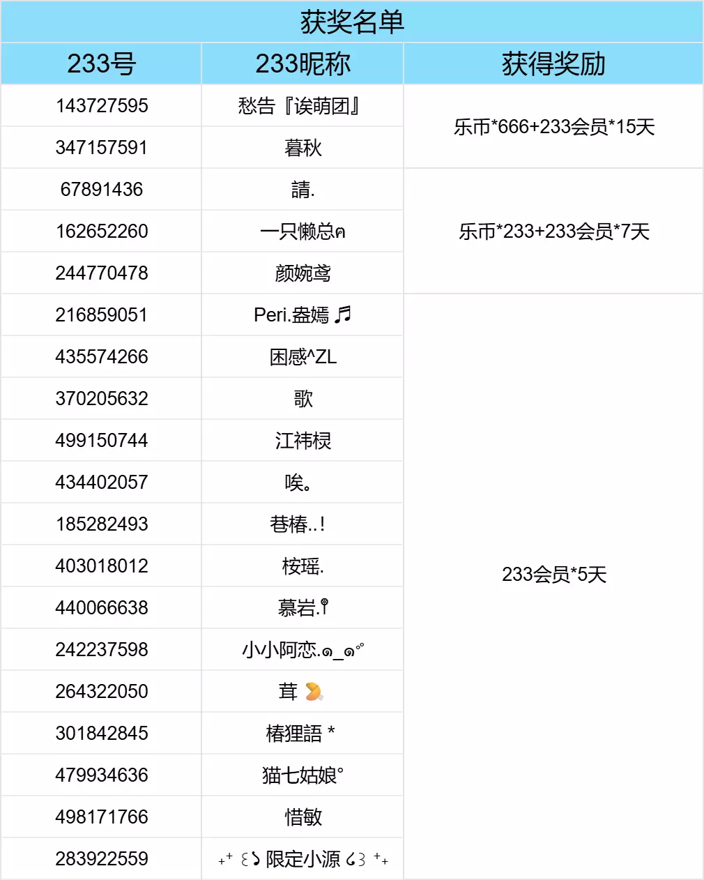 随机抽取3名玩家获得:乐币*666+233会员*15天