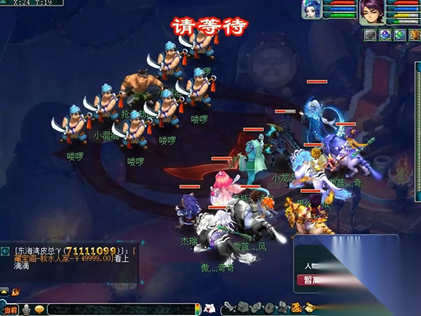 最终决战比较麻烦,首先必须先杀主怪,然后小怪会无限神佑,必须在低于某个数值的血量对它扔火符咒才能杀死,这就是为什么要两个恢复,需要慢慢磨。主怪抗性高,物法打不动,只能磨,封印夺命傀儡和高级打手,这俩会横扫,被封以后会用水清,打死主怪以后,可以开始打小怪了,优先击杀打手。129级队伍打手血量差不多在8900左右,傀儡和打手血量差不多在15000左右,20%以内就能用火符咒,注意算一下,避免总神佑。