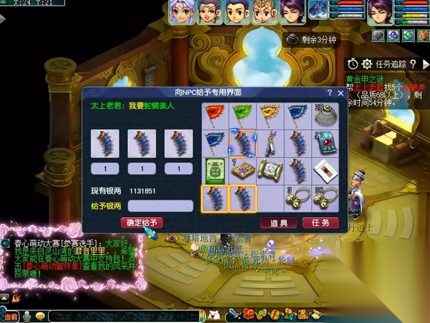 拿到药以后,再去魔王寨的牛妖司仪进入魔王居,挨个给予求到的活血丹。