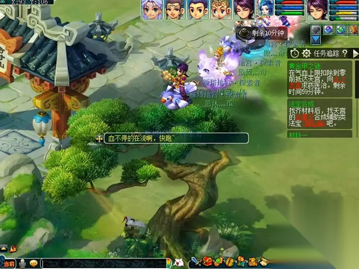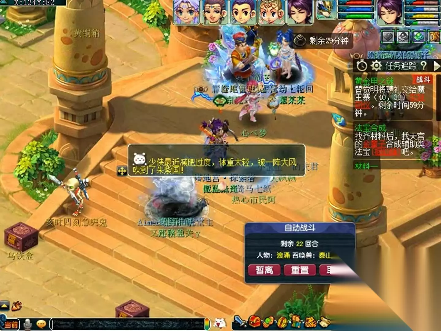 牛魔王会玉清,攻击较高,封左右两侧牛头,先秒主怪,两侧牛头第一回合变身。第二回合鹰击,难度一般,注意加血。 打完以后再去方寸山找菩提祖师,去天宫求药,路上会持续掉血,不能用旗子和飞行符,但是可以飞行,稍微能缩短一点距离。
