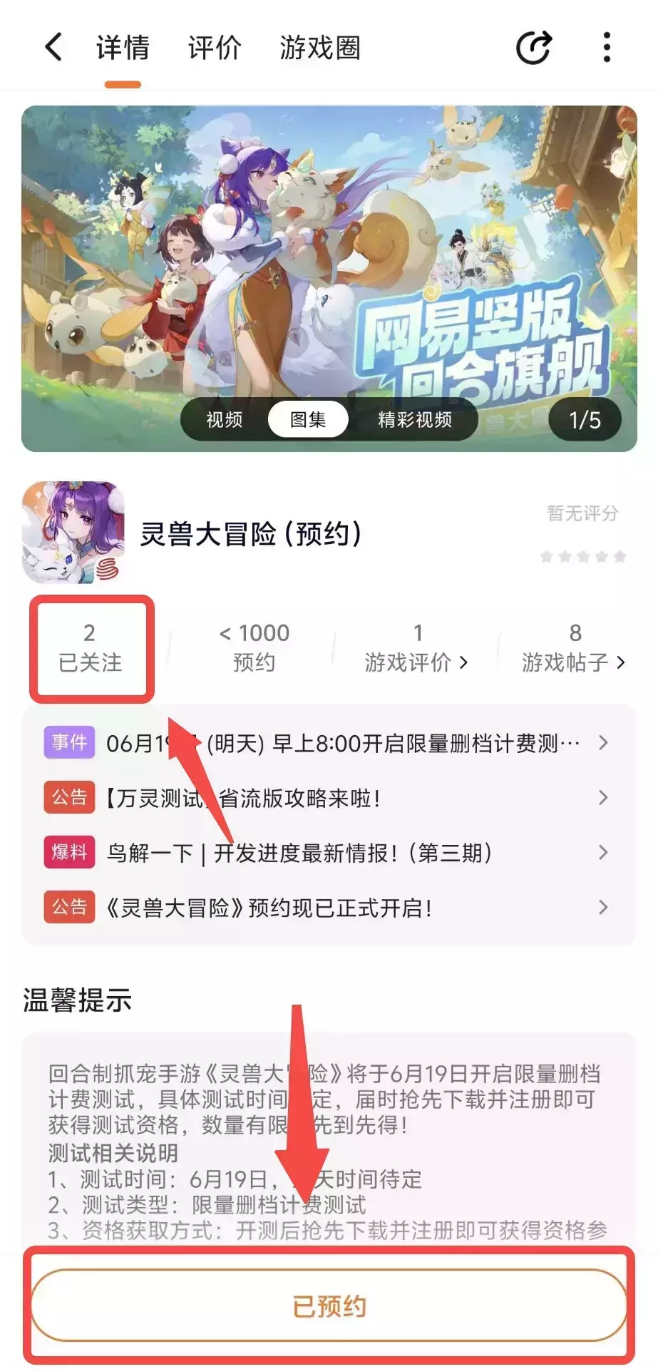 1、在233乐园点击关注+预约《灵兽大冒险》并带上截图已关注预约成功图片