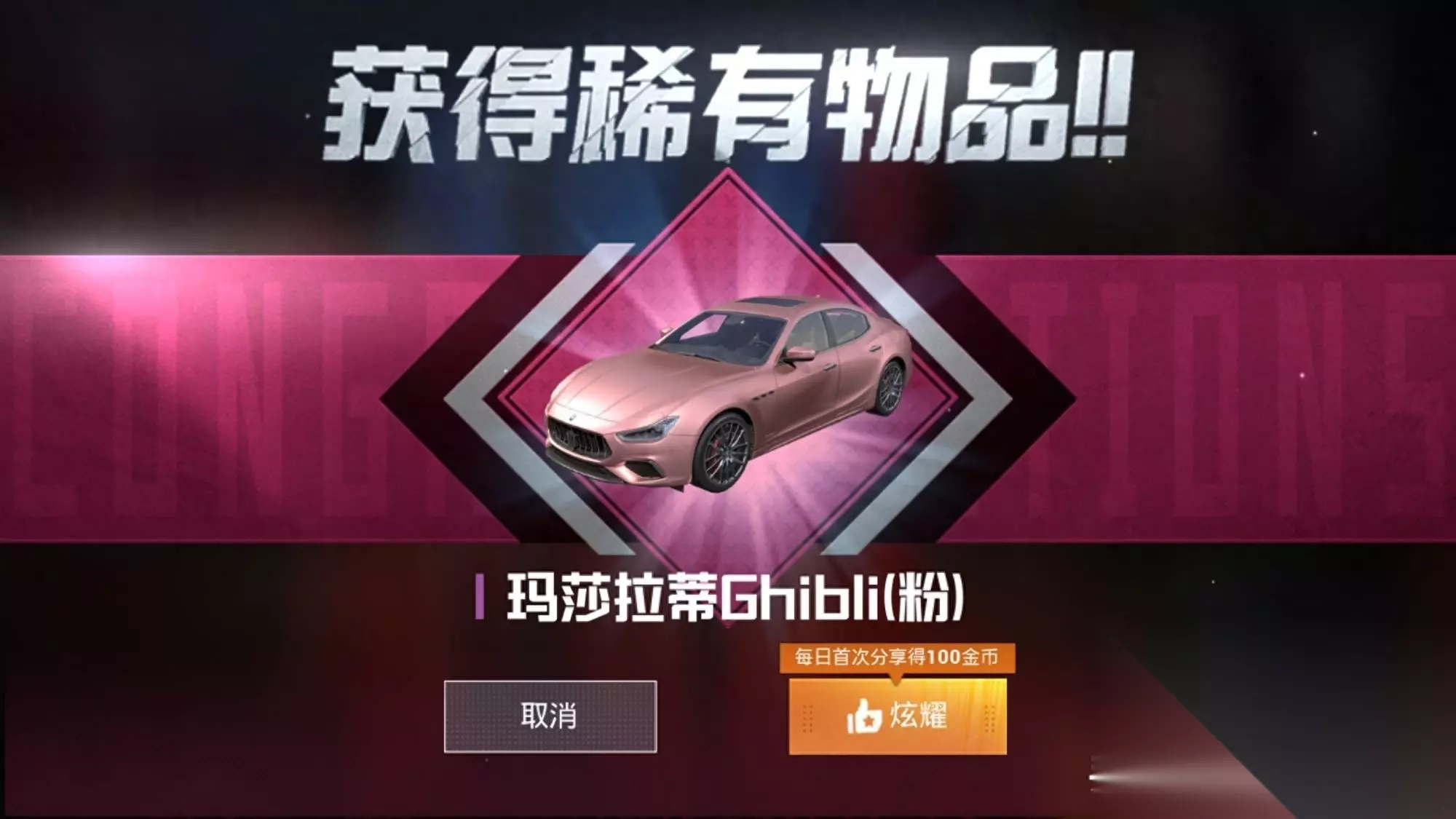 免费获得?免费获得方法分享"> 话题:“吃鸡”玛莎拉蒂跑车可以免费获得,获得方法公布,不建议尝试! 据刺激哥所了解,玛莎拉蒂跑车的获得方法一共有5种。第一种方法,升级“星耀赐福”的升级,到6星以,可以兑换粉色或蓝色任意一辆跑车。或者升级到7星,可以兑换金色玛莎拉蒂跑车。 刺激哥的某一位粉丝,花费1700兑换了一辆金色的跑车。看到粉丝晒出的金色跑车,刺激哥可谓是非常的羡慕。