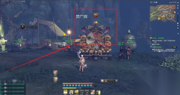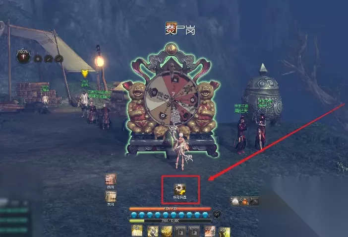 剑灵千魂灵妖大转盘怎么用 使用方法: 1、我们来到焚尸岗地点,可以看到大转盘。但是没有千魂灵妖的精气是无法转动的。