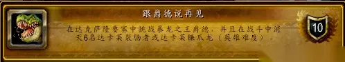 3.跟爵德说再见成就做法:这个成就其实就是在跟暴龙之王爵德战斗中杀死6条小龙,成就很简单。 注意事项:小龙不是召唤出来的,而是爵德那个场地里面所存在的小龙,开怪前不要把小龙清了,如果打到一半才发现龙不够就尴尬了,输出可以把小龙打到残血,坦克拉着小龙进入BOSS战斗,在战斗中击杀即可。